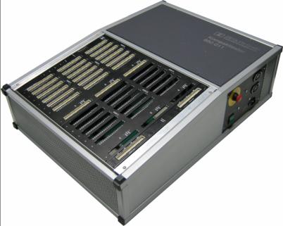 Ein Funktionstester in einem kompakten Pultgehäuse eingebaut zum Aufstellen auf Prüftischen und Prüfeinheiten mit einer umfangreichen Ausbaustufe. Reservesteckplätze sind in ausreichender Zahl vorhanden, sodass eine Anpassung an die kompliziertesten Aufgabenstellungen gewährleistet ist. Auf der rechten Seite befinden sich der Netzanschluss und der Netzschalter, links ist der Kabelausgang für den PC-Anschluß, auf der Rückseite sind die Kaltgerätesteckdosen für den PC-Anschluß, das Messgerät und zusätzliche Komponenten vorhanden